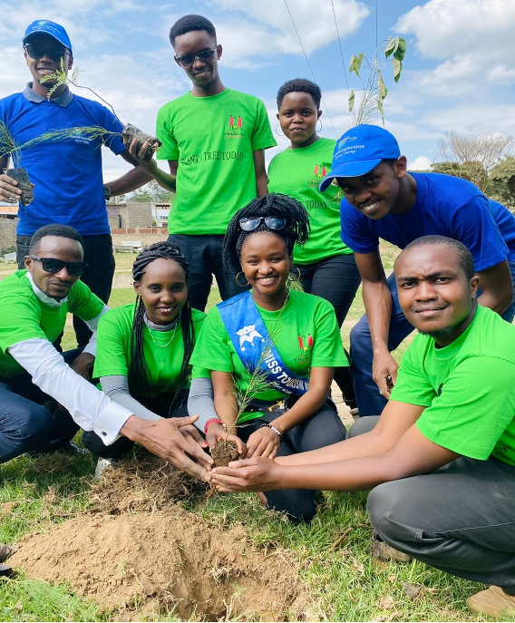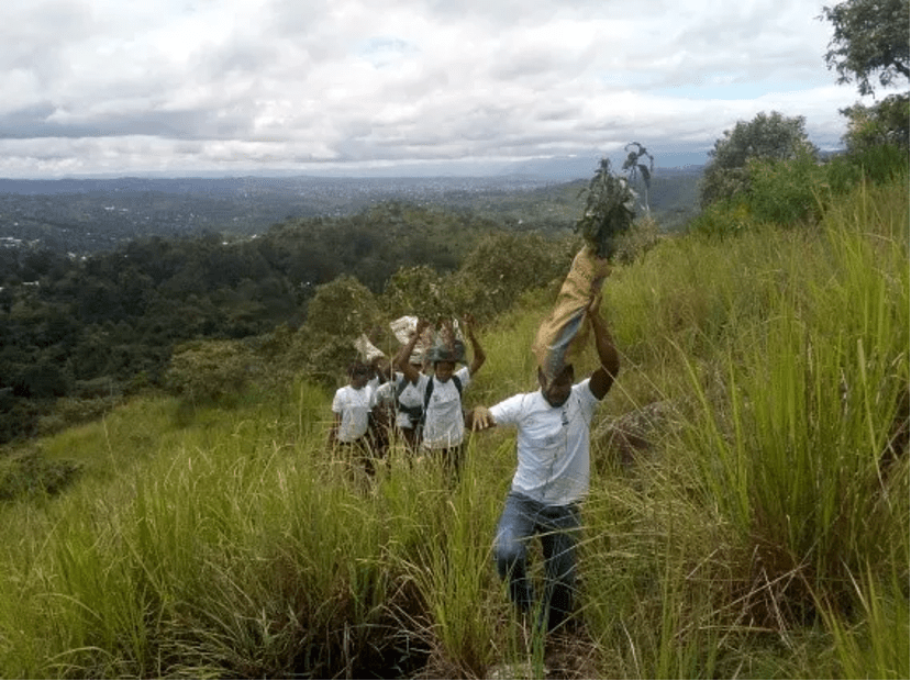 Fontoh (foremost) organizes young people to plant trees in his hometown, Cameroon.