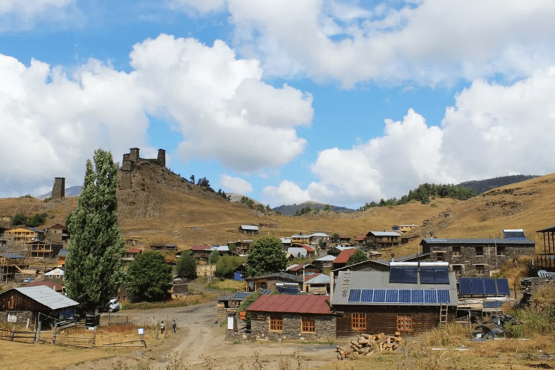 The Georgian Castle overlooks the villages that have completed energy transformation.